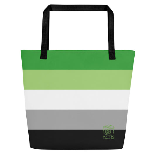 Aromantic Pride Flag | Tote Bag | Large | Green White Grey Black