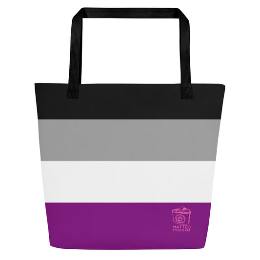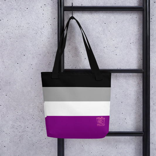 Asexual Pride Flag | Tote Bag | Large | Black Grey White Purple