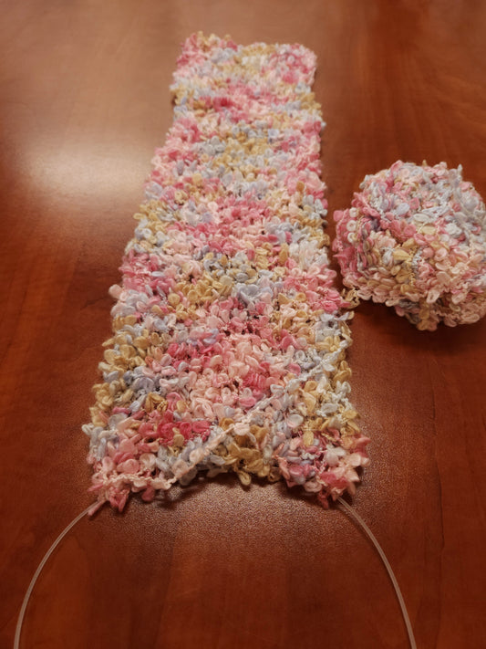 "Cotton Candy" Hand-Knit Traditional Scarf | Pink Blue Tan