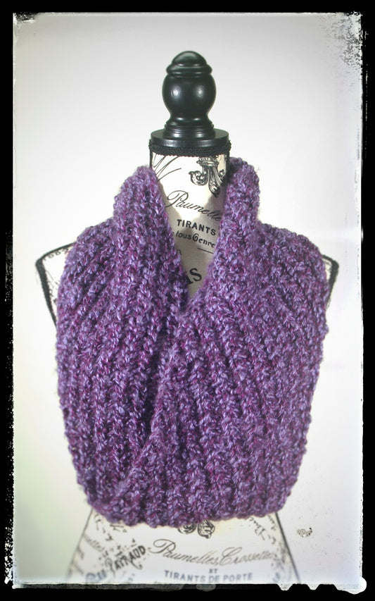 "Amethyst Dream" Hand-Knit Cowl Twisted Infinity Scarf | Purple
