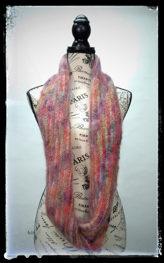 "Aurora" Hand-Knit Cowl Twisted Infinity Scarf | Purple Lavender Pear Red