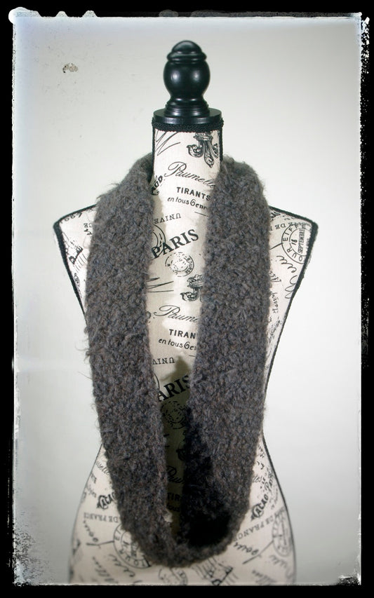 "Cloudy Sky" Hand-Knit Cowl Twisted Infinity Scarf | Alpaca Gray Brown