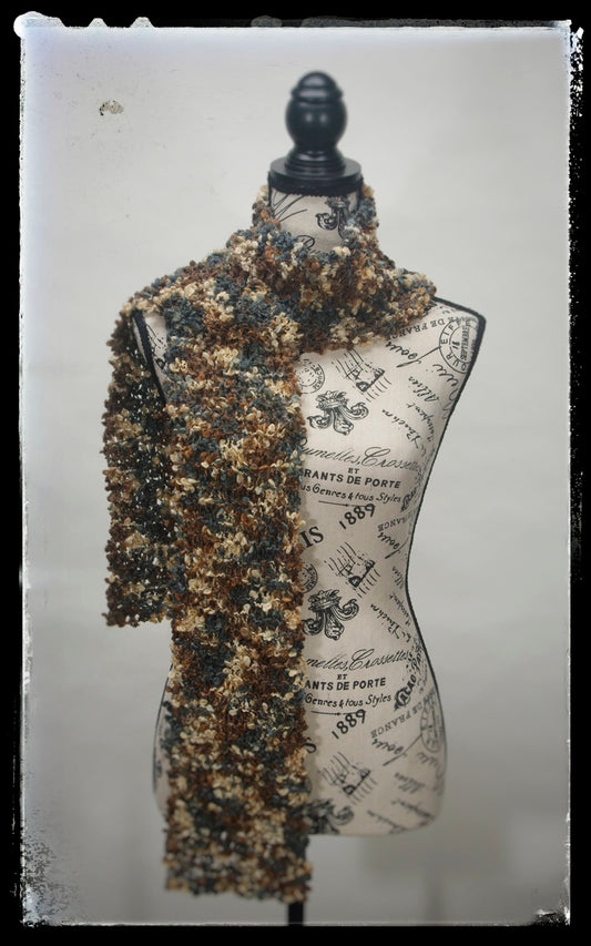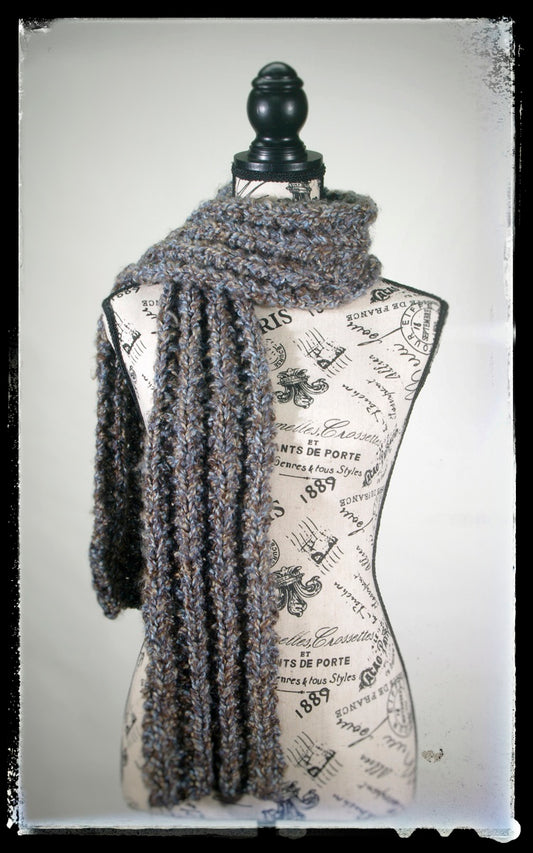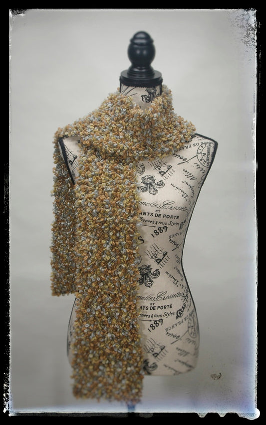 "Desert" Hand-Knit Traditional Scarf | Bronze Gold Slate Gray