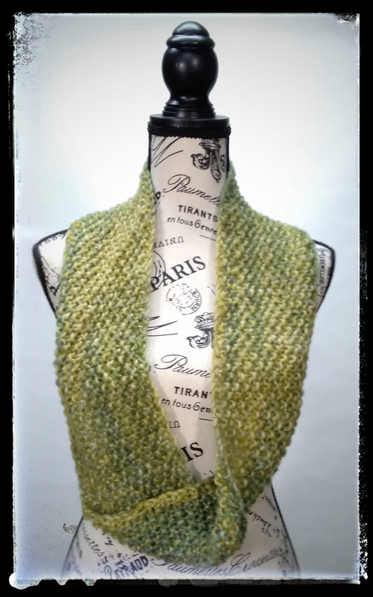 "Meadow" Hand-Knit Cowl Twisted Infinity Scarf | Green Chartreuse Yellow