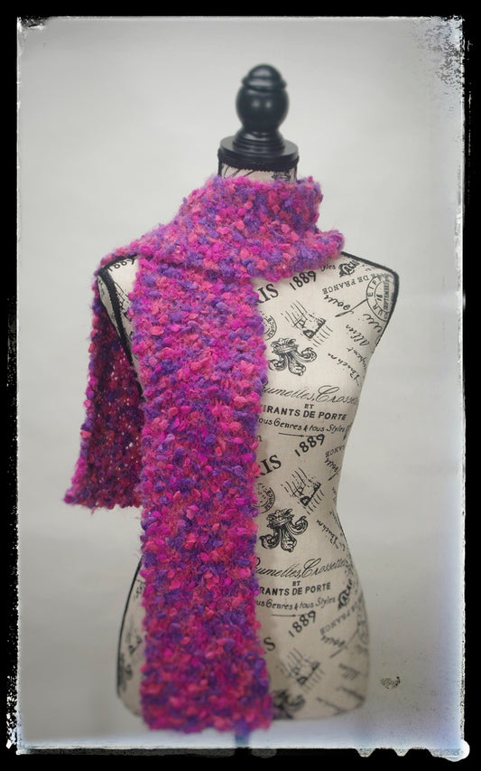 "Princess Delight"Hand-Knit Traditional Scarf | Pink Magenta Purple