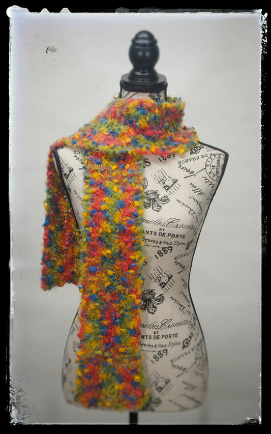 "Rainbow Sprinkles" Hand-Knit Traditional Scarf | Purple Blue Green Yellow Orange Red