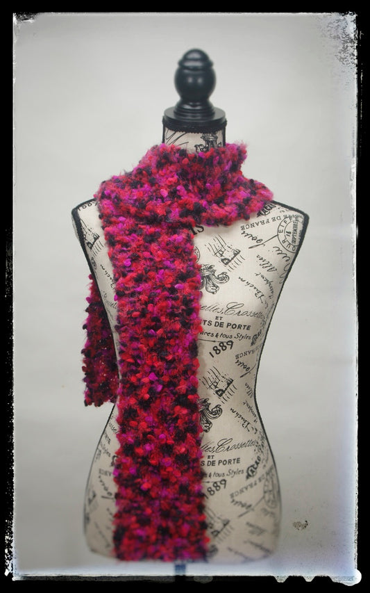 "Red Hot Pink" Hand-Knit Traditional Scarf | Red Pink Black