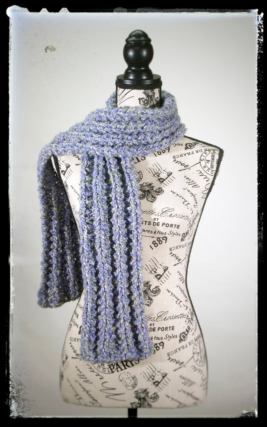 "Spring's Promise" Hand-Knit Traditional Scarf | Lavendar Periwinkle Sage