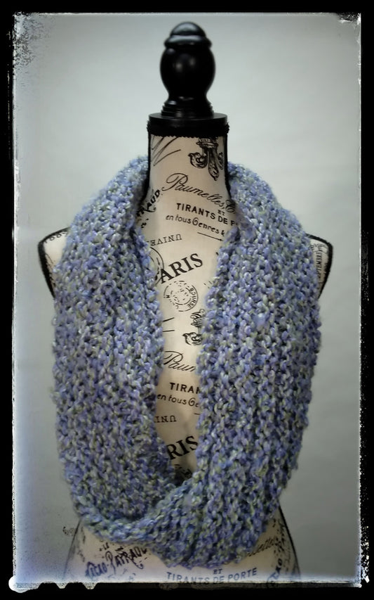 "Spring's Promise" Hand-Knit Cowl Twisted Infinity Scarf | Lavendar Periwinkle Sage