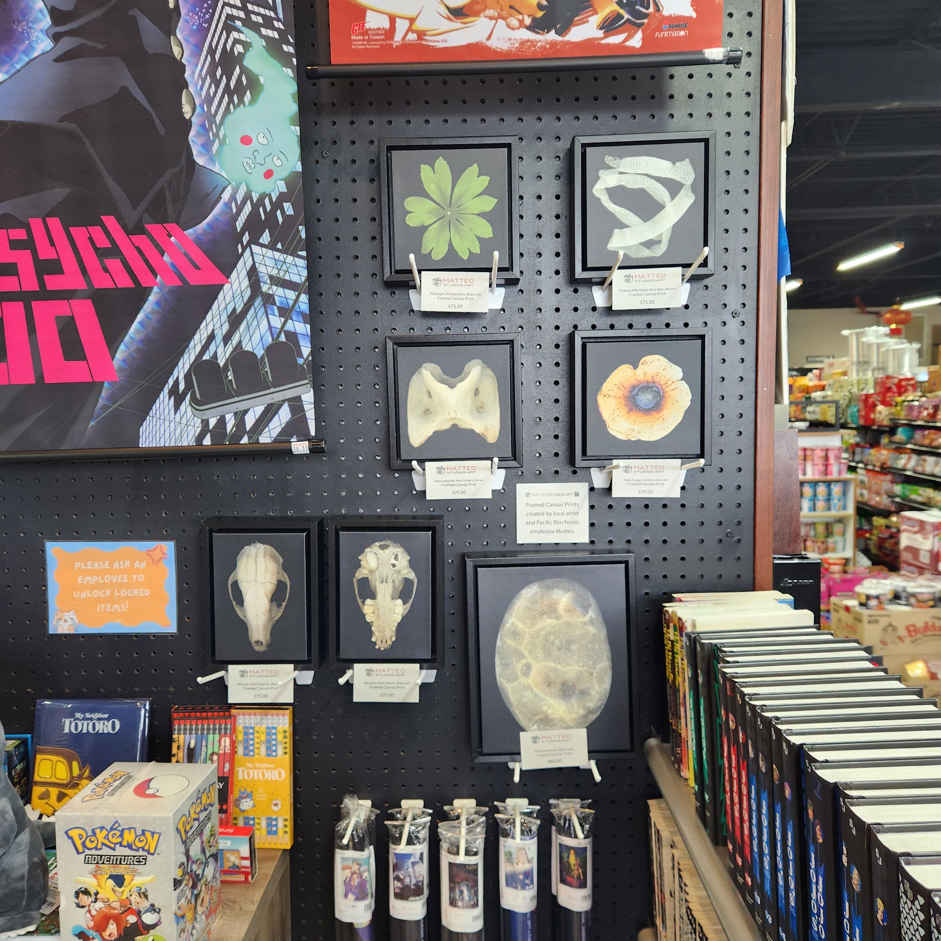 Select Framed Canvas Prints, Charms, Stickers and Pinback Buttons now available at Pacific Rim Foods in Portage, Michigan!