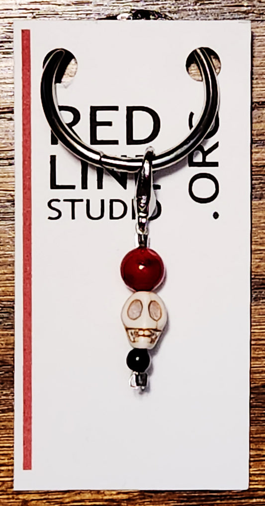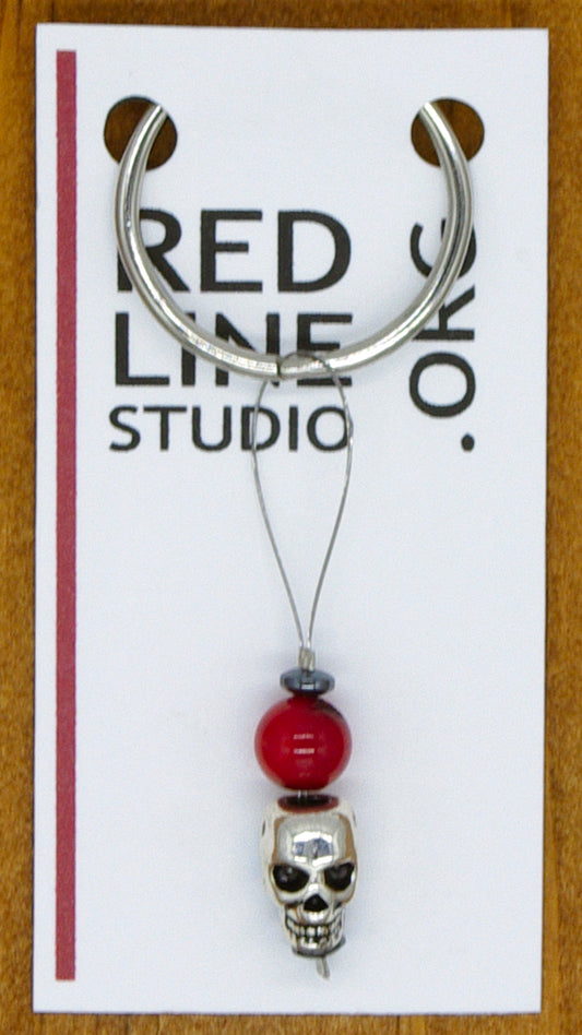 Skull Silver Beads Wine Glass Charm | Zipper Pull | Stitch Marker