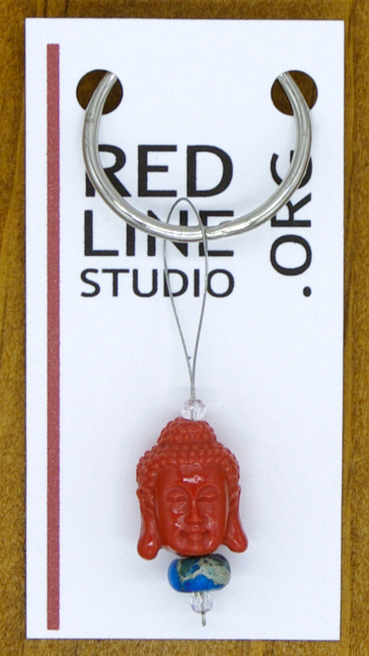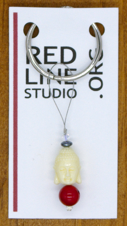 Siddhartha Gautama Buddha Head Red Wine Glass Charm | Zipper Pull | Stitch Marker