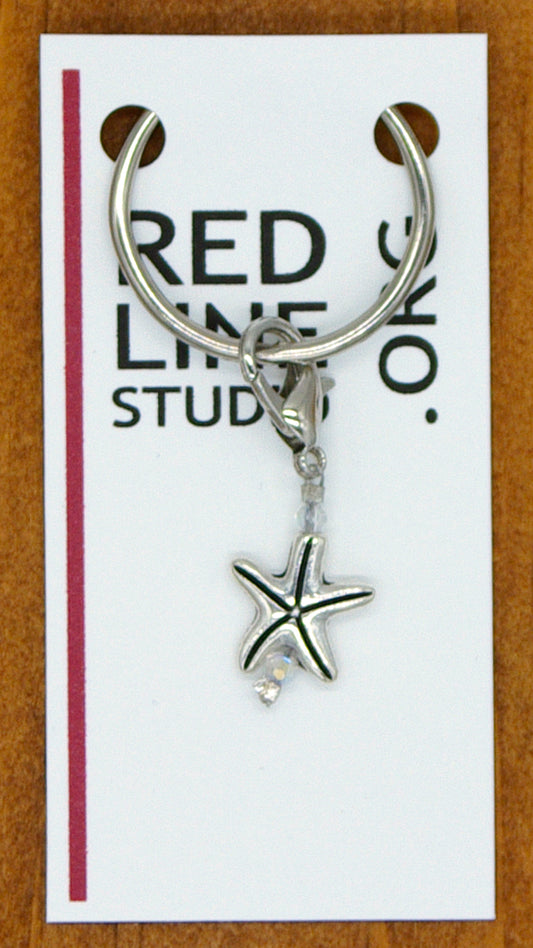 Starfish Shell Silver Wine Glass Charm | Zipper Pull | Stitch Marker