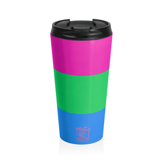 Polysexual Pride Flag | Stainless Steel Travel Mug | 15oz | Pink Green Blue