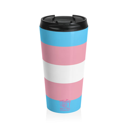 Transgender Pride Flag | Stainless Steel Travel Mug | 15oz | Blue Pink White