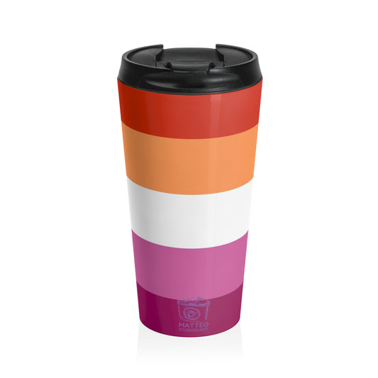 Lesbian Pride Flag 5 Stripes | Stainless Steel Travel Mug | 15oz | Orange White Pink