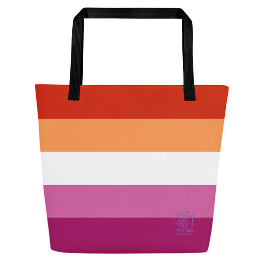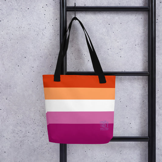 Lesbian Pride Flag 5 Stripes | Tote Bag | Large | Orange White Pink
