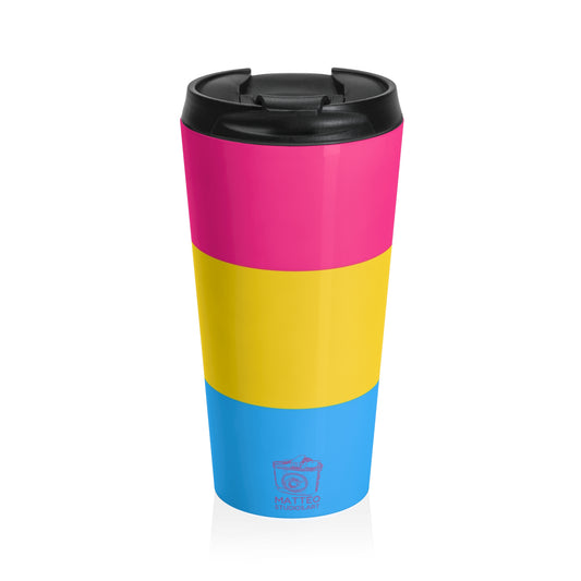 Pansexual Pride Flag | Stainless Steel Travel Mug | 15oz | Blue Yellow Pink
