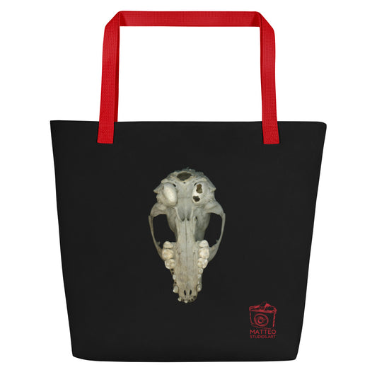 Raccoon Skull Front & Back | Tote Bag | Large | Black
